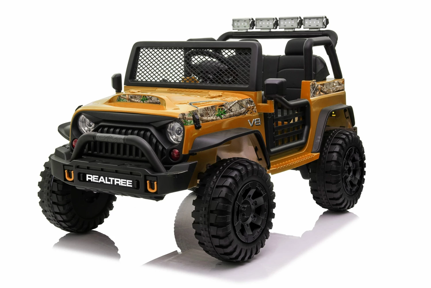 This officially licensed RealTree Ride-On SUV has a luxury look and feel, and comes with an upgraded 12 volt battery and motor. It has tons of cool features, including working headlights, music and horn sounds on the steering wheel, a realistic engine start sound, seat belt, comfortable seat, and doors that open. All that, plus a working FM radio and an AUX connection to connect your phone and play music of your choice. It even has remote control access for parents’ convenience. All in a realistic and cool-looking SUV style with custom RealTree camo details.