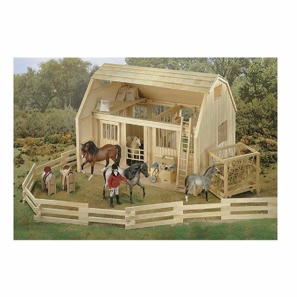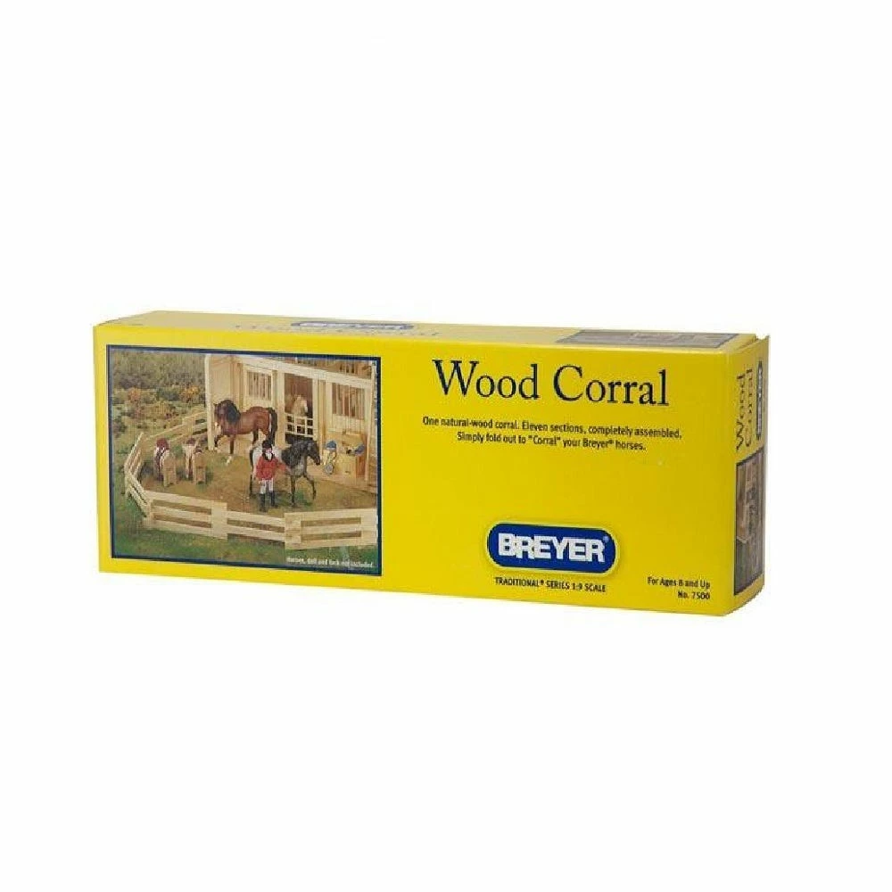The Breyer wood corral set includes 11 sections to make a total length of 8 feet. Fencing folds up for easy travel and storage and each section links together. Use this set alone or with the Breyer Barn.