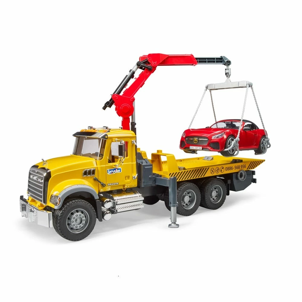 Tow trucks are versatile tools in traffic. Regardless of whether they load up broken down vehicles and take them to the workshop or remove illegally parked vehicles. The MACK GRANITE tow truck featuring many functions has now been added to the BRUDER range. The platform can be lowered to recover vehicles. It is also possible to load vehicles using the crane that can be extended and pivoted. In this process, the loading harness, consisting of chains and wheel clamps, enables safe and fast lifting and loading. Wheel chocks and folding outriggers secure the vehicle and tread tires round off the HGV. The “incredibly” realistic driver’s cabin with its doors that can be opened, the tilting engine bonnet, providing a view of the engine block, the foldable rear-view mirrors, and the many add-on accessories, which give the its chrome look, make this truck a true feast for the eyes of every truck fan. The new BRUDER roadster features a removable roof and can accommodate any Bruder figure. The BRUDER roadster comes with the new wheel changing system for even more fun.