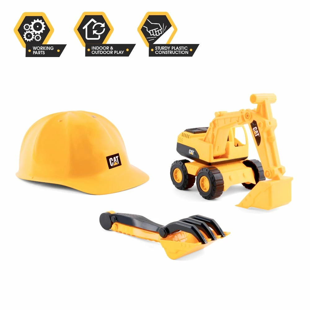 Take outdoor fun to the next level with the CAT Construction Fleet Sand Set! This set gives you all the tools you need to tackle any construction job, including a push-powered 10” vehicle along with a hard hat, shovel, and rake. Safety comes first on the job site so proudly wear your CAT hard hat when you’re controlling the action by moving and posing the articulated vehicle buckets and booms just like the real thing. Use the hand tools separately or snap them together to help excavate the job site. Real CAT machines are known for their high quality, these toys are no different. They’re built to withstand the elements and perfect for outdoor play. Appropriate for ages 2 years and up. Assorted item. Collect them all!
