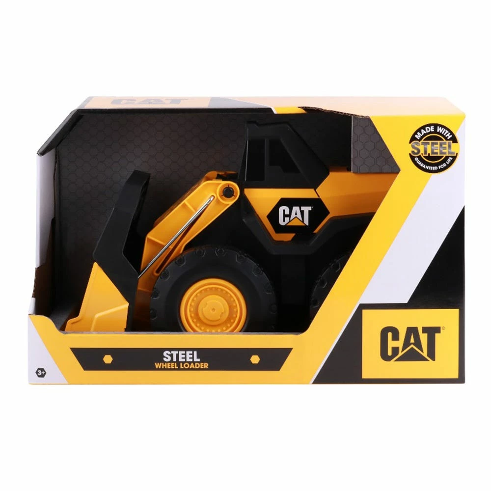 Take on the toughest construction jobs with the Cat Steel Wheel Loader. Built with sturdy steel construction and large wheels this 16” vehicle is just the like the real thing. You’re in control of the action. Move the articulated arm and bucket up and down to scoop up dirt, rocks, or sand, haul it away, and dump out the payload. Real Cat machines are known for their high quality, and these toys are no different. Cat steel toys feature a lifetime guarantee so you can be comfortable knowing this product is built to last. Appropriate for ages 3 years and up.