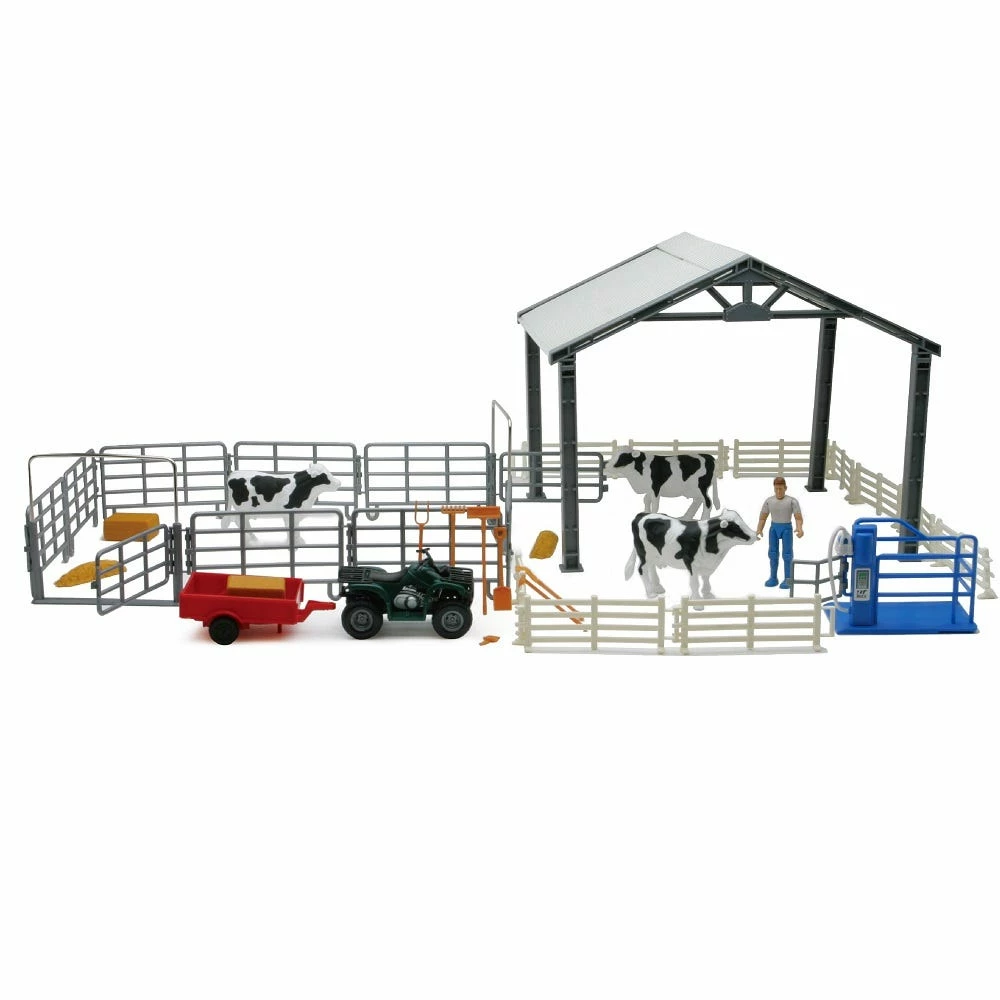 This Playset Has Everything For The Young Cattle Rancher. The Set Features An Assortment Of Cattle, A Shelter, Farmer, Tools And Fences.