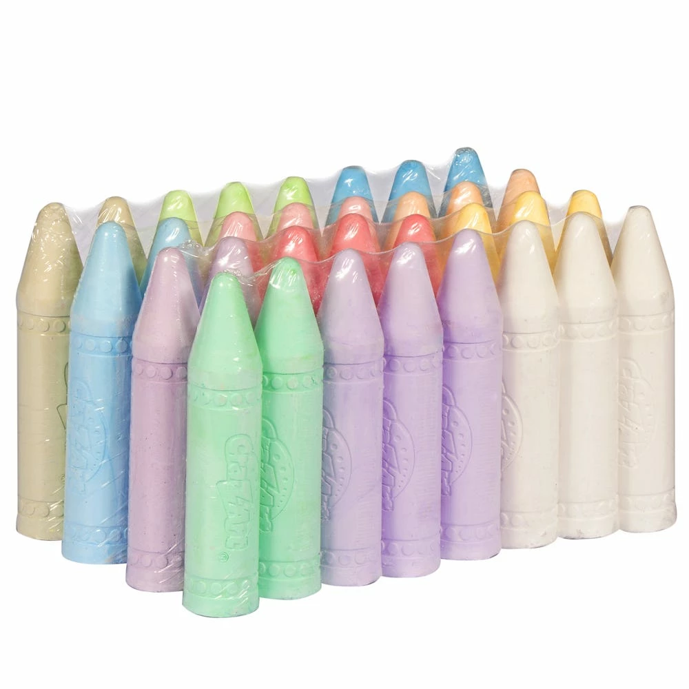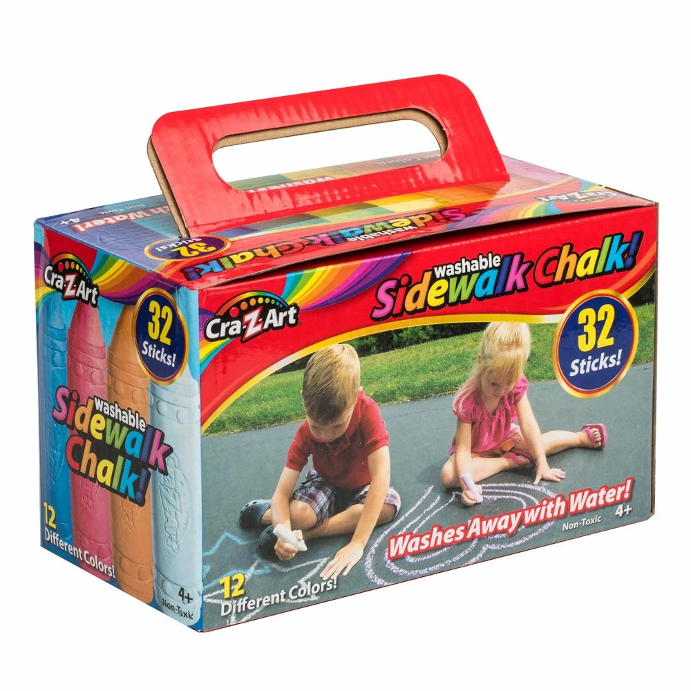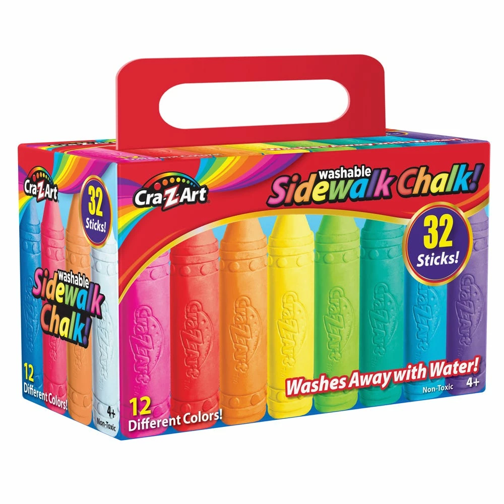 Add color to outdoor events with this Cra-Z-Art washable sidewalk chalk. The thick bodies provide improved grip, and the pointed tips help create sharp lines. The colorful pack contains 32 pieces of chalk in 12 different colors. Need to clean up? Not a problem, the sidewalk chalk washes away with water. This Cra-Z-Art washable sidewalk chalk can be used by children as young as four years old. Perfect for family fun days.