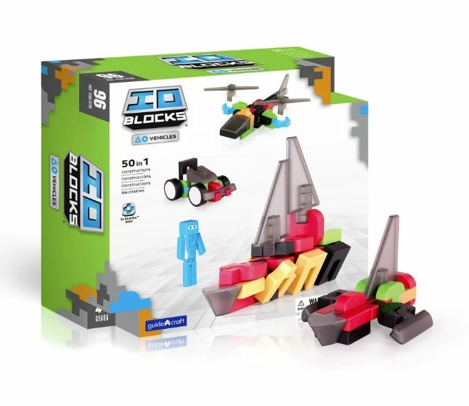 - IO Blocks®, the award-winning, open-ended, friction-fit construction toy with pixelated, digital design roots, now comes with 12 new vehicle parts and 2 IO Blocks® Hero figures. Works with all other IO Blocks® building toy sets.