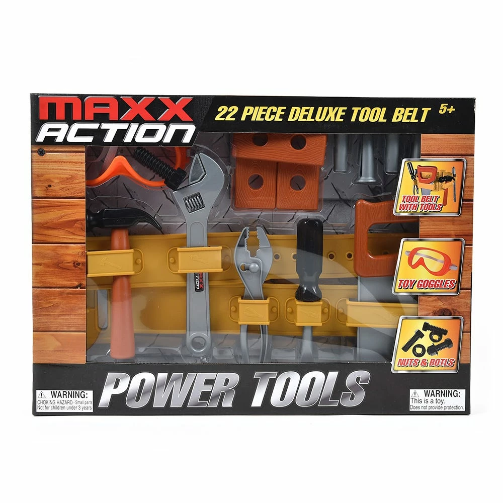 - REALISTIC TOOLS: Comes with 22 pieces of Maxx Action tools and accessories, including a hammer, saw, wrench, screwdriver and more! Perfectly sized for small hands to enjoy imaginative play.