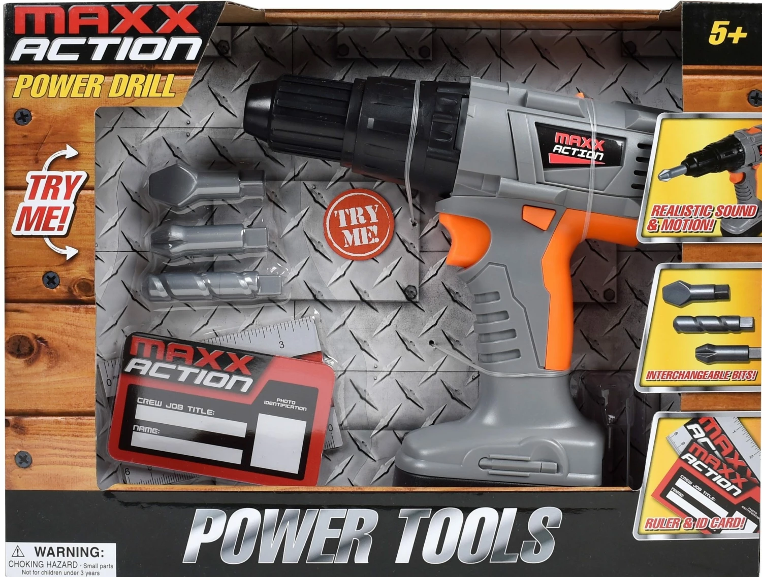 - 3 different Bits, drill, flat and philips screwdriver Bits