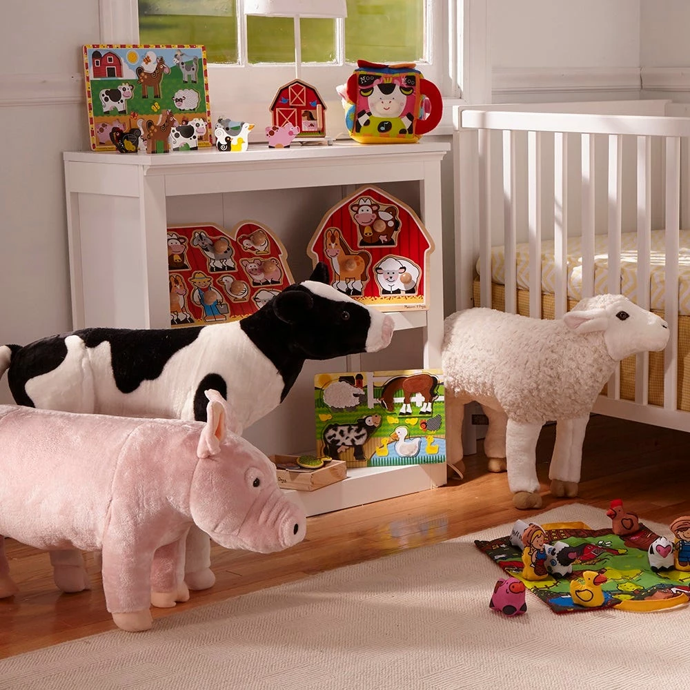 Oink oink, snort snort… kids will love this pink Pig from Melissa & Doug. The barnyard-favorite pal is ready to play anytime, with its corkscrew tail, floppy ears, squishy snout and inviting smile. Sturdy wireframe construction and soft plush surface make this Pig stand strong and steady no matter how much your little one rolls and plays with it (which will probably be a lot).