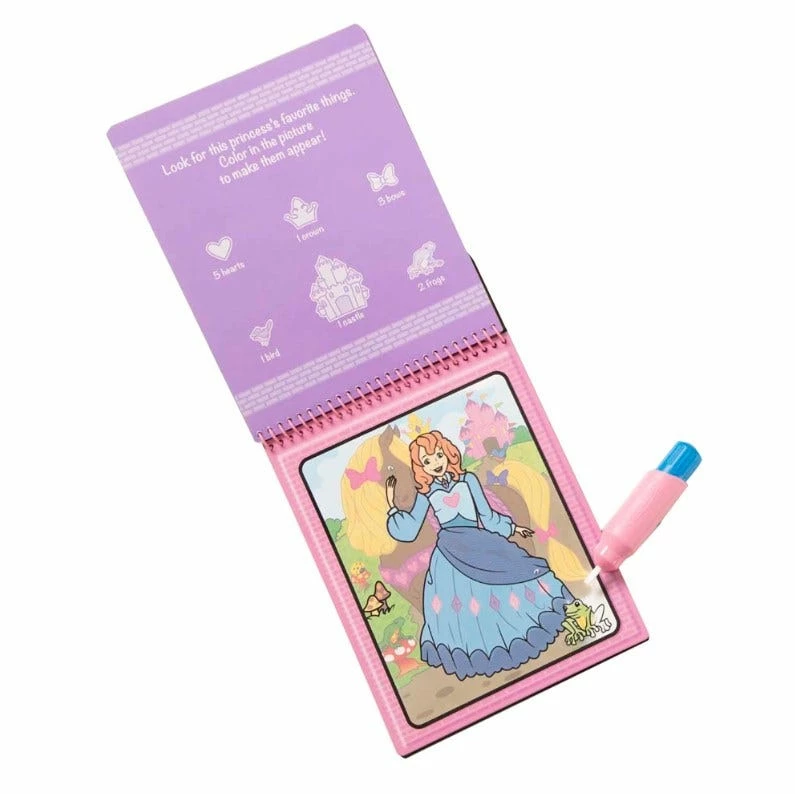 No-mess painting for kids! This exciting paint-with-water coloring book includes four reusable pages and a refillable water pen. Simply use the pen to color in each scene details and vibrant color appear with every stroke! Then let the page dry to erase the pictures and color it in again and again. This fairy tale-themed book includes four scenes to color, and a search-and-find activity for each scene. The chunky-sized water pen is easy for kids to hold and stores neatly right in the front cover, making this Water WOW! an ideal travel activity book and travel toy for kids!