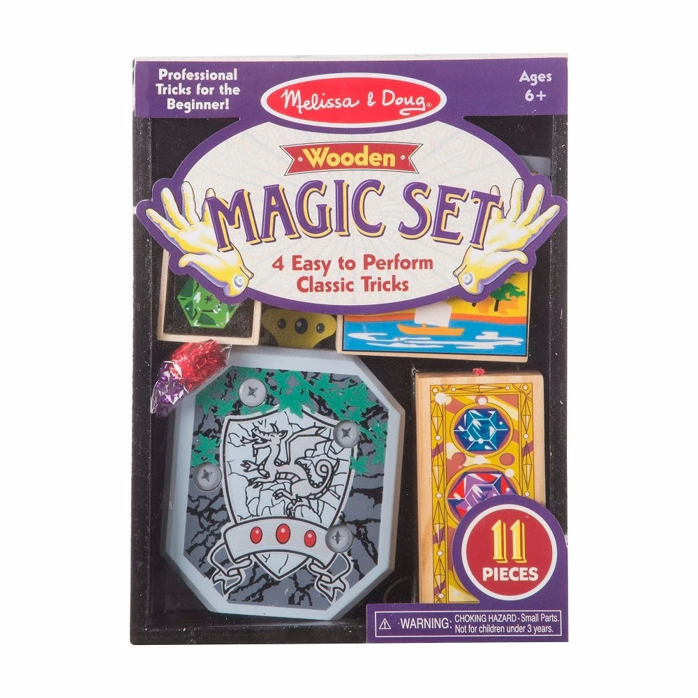Abracadabra! This fantastic wooden set includes four easy-to-master tricks for beginners. Young magicians will improve their confidence and fine motor skills as they amaze family and friends with exciting tricks and illusions! “Magic Jewel Box,” “Color Changing String,” “Chamber of Illusion” and “Sword in the Stone” are included. One of the few magic sets appropriate for children as young as six.