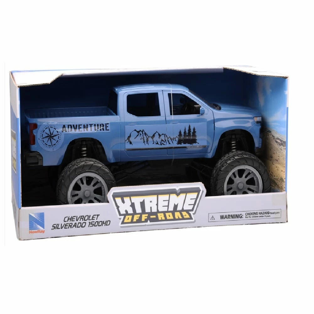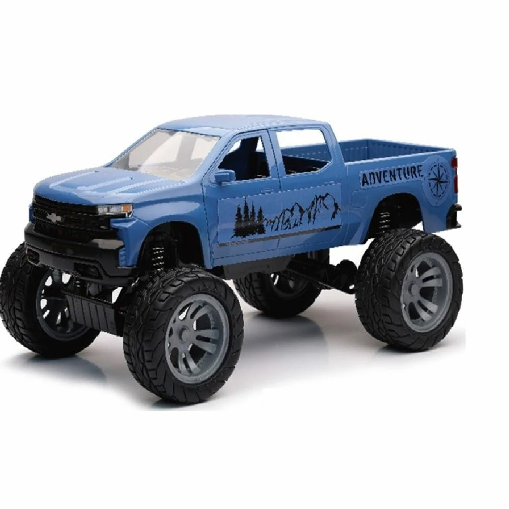 1:14 scale Chevrolet 1500 Monster pick-up with side graphics; four by four suspension and oversized treaded tires, aids in this vehicle over nearly ay terrain