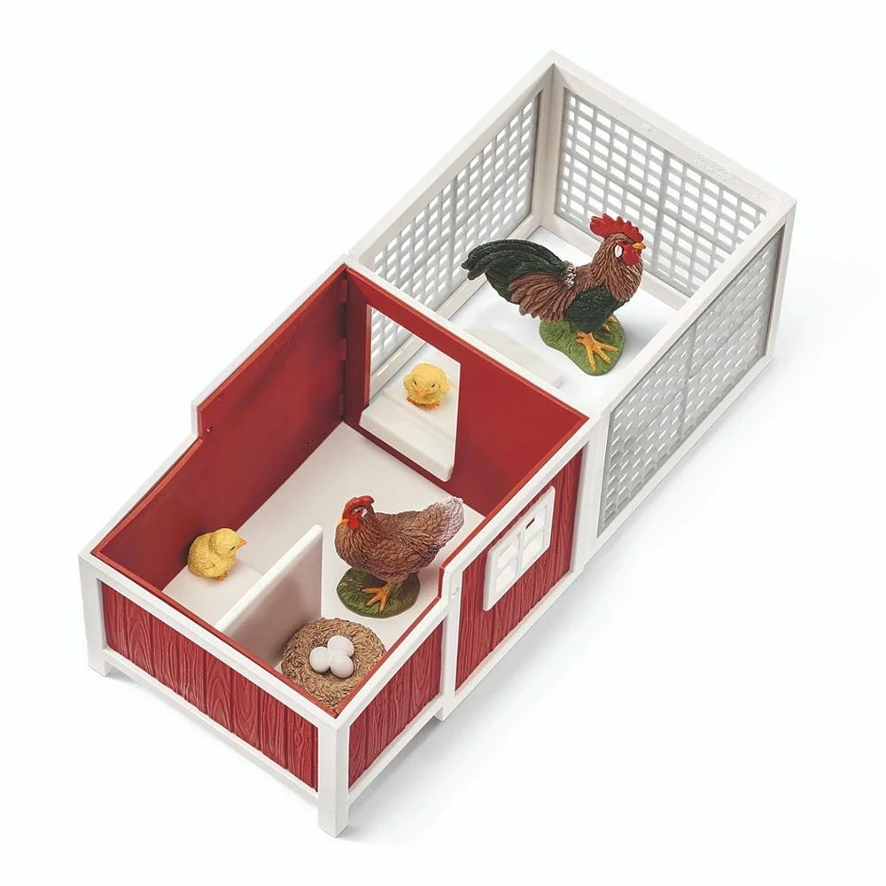 - Includes chicken coop, fencing, chickens, baby chicks, and egg nest.