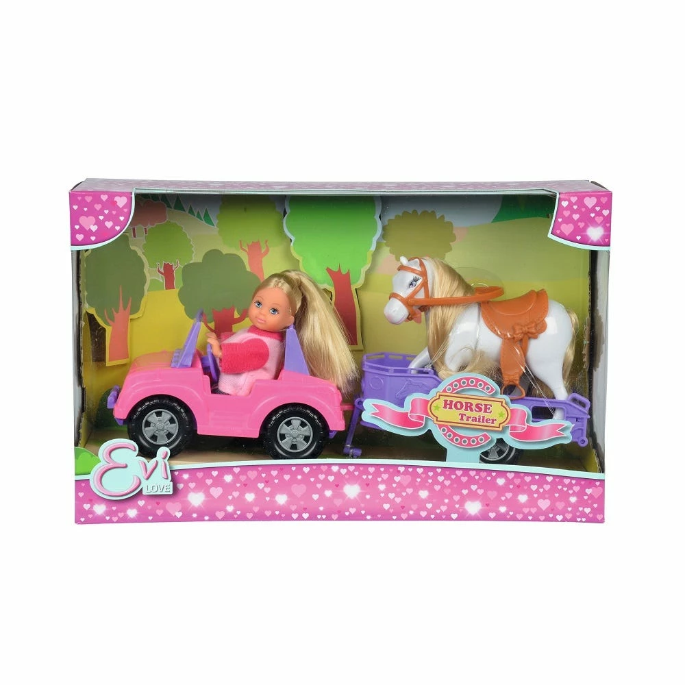 Evi with jeep, horse trailer and pony. For ages 3 and up.Â