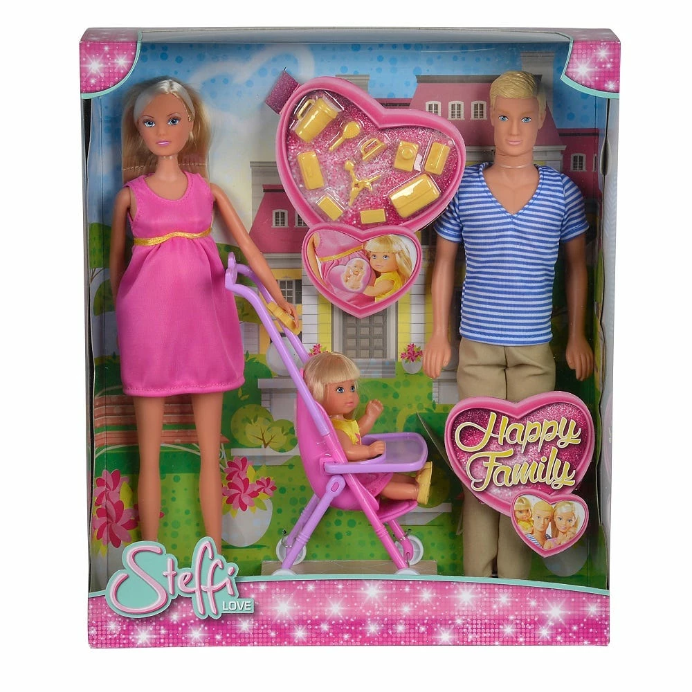 Pregnant Steffi, Kevin, Evi and baby with buggy and 11 accessories. For ages 3 and up.Â