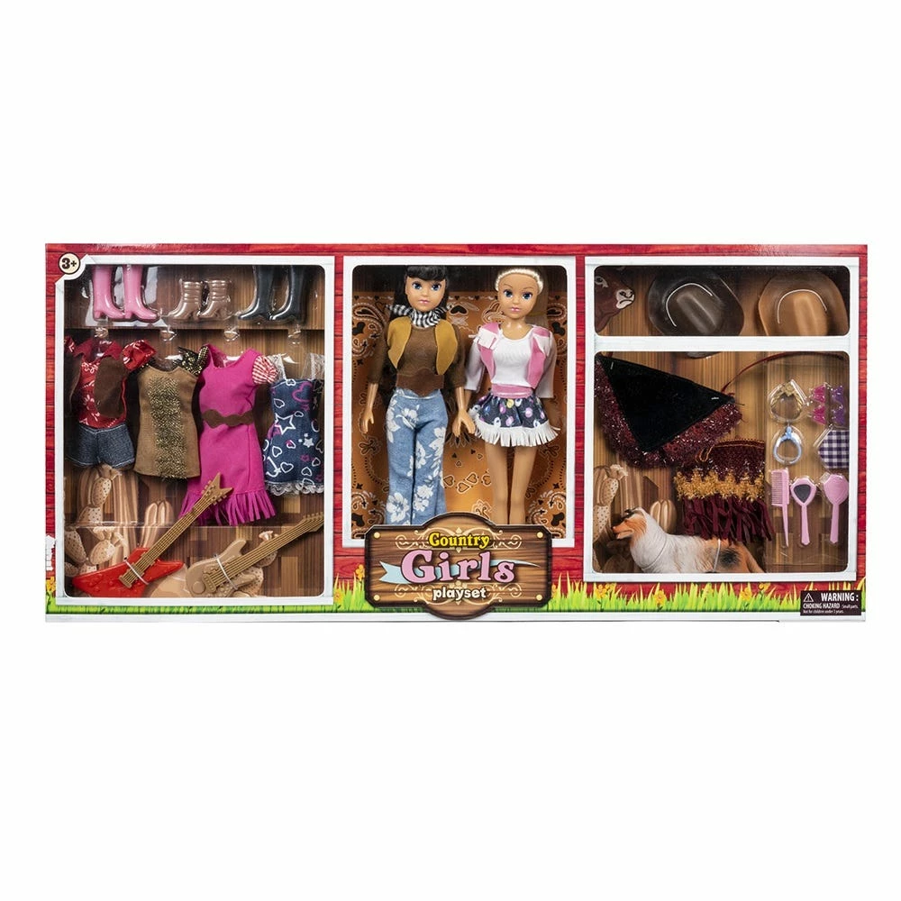 Country Cowgirl’s playset comes with 2 dolls and multiple accessories for an even more enjoyable playtime. The set includes four additional outfits that can me mixed and matched and worn by either doll. Your child will have endless fun dressing up each doll and adding the perfect accessories to match.