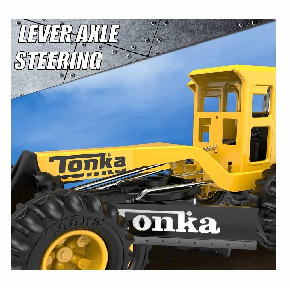 - The Tonka Steel Classics Road Grader is ready to Level dirt and gravel like a pro! Move the blade side to side to flatten anything in its path; no material is too tough for this hard-working vehicle to handle