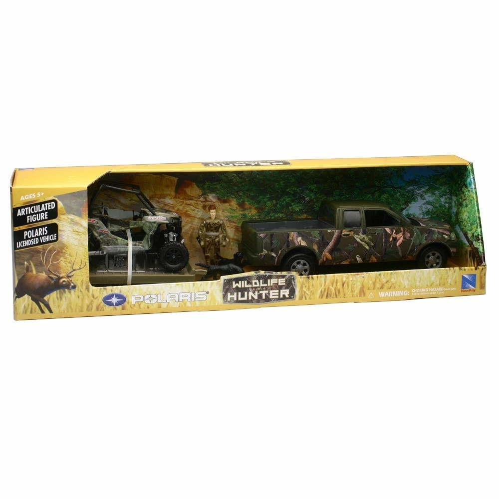 The Playset Includes A Pickup Truck And Polaris Razor; Both With Realistic Camo Pattern. Set Also Includes A Male Articulated Figure And Dogs.