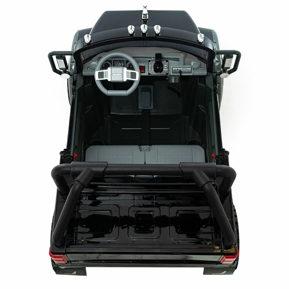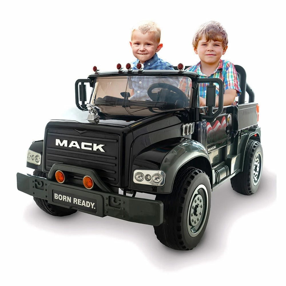 Get ready to give your child an exciting ride with this Mack Jack Pickup Ride-On! This ride on is equipped with Chrome Grille and the iconic bulldog hood ornament, which is a perfect gift for Mack lovers. Comes with 2 Doors Opening, Sound Effects, Working Head Lights and Battery Capacity Indicator, which ensure your kids are well entertained. This kid-sized automobile is sure to inspire a lot of playtime that will include exciting adventures from his creative imagination. With the 12 Volts Battery Power, it can reach a maximum speed of 5 mph. Perfect for children ages 3 and up, with a maximum weight limit of 130 pounds.