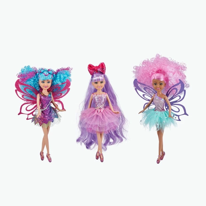Removalbe outfits that are interchangeable with all other sparkle girlz dolls. 3 crazy colorful hair styles in fluffly candy floss fro, superlon bow-eautiful ballarina and bluetops knots fro.